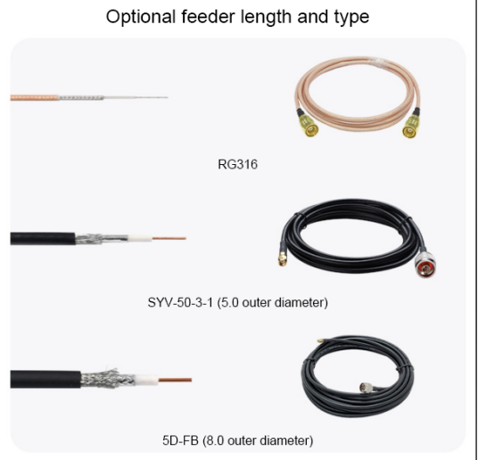 - 3m feeder cable as standard, RG303 brown high temperature resistant feeder cable